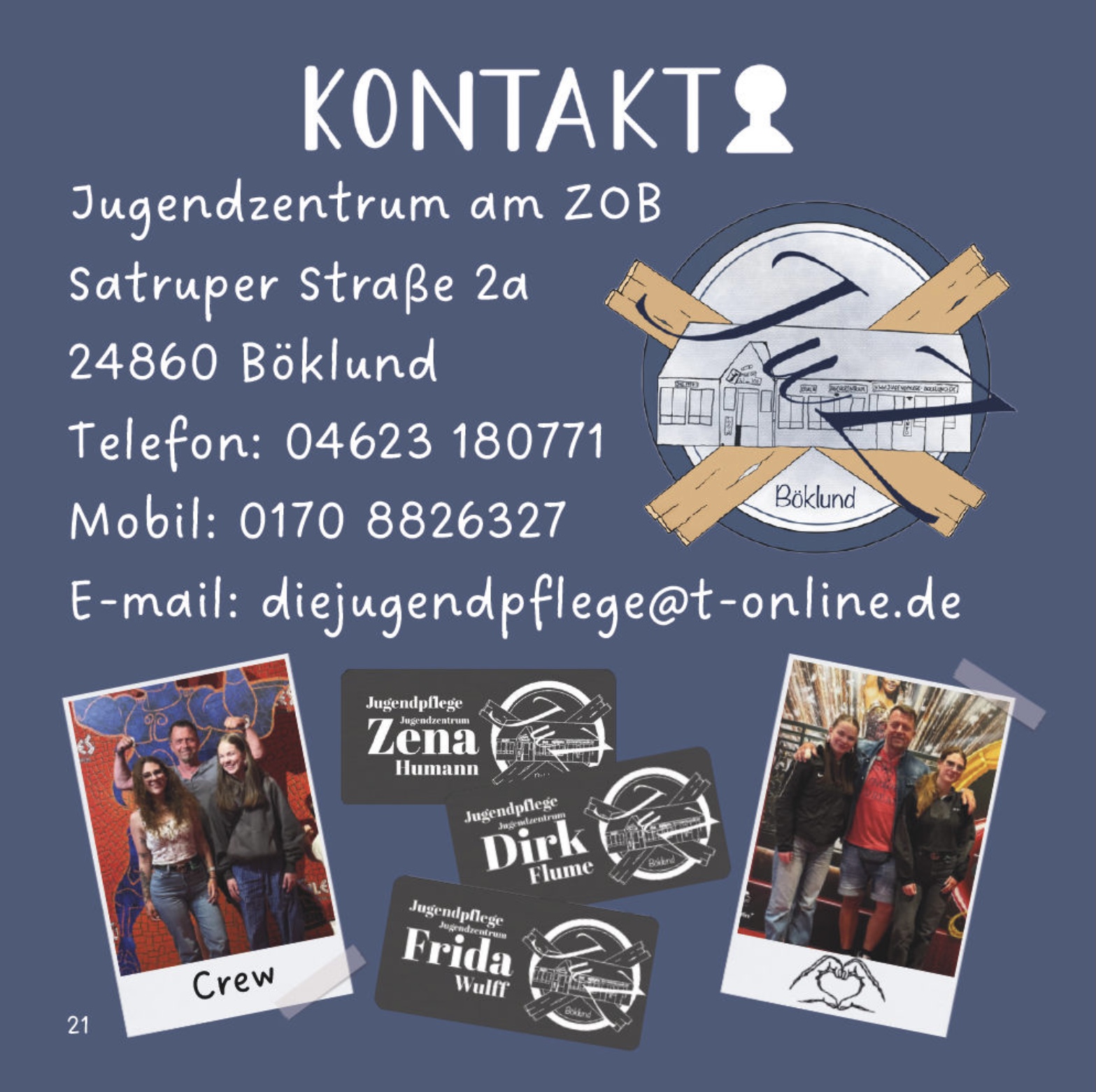 Jugendpflege Böklund - Jugendzentrum am ZOB - Satruper Str. 2a - 24860 Böklund - Tel.: 04623 180771